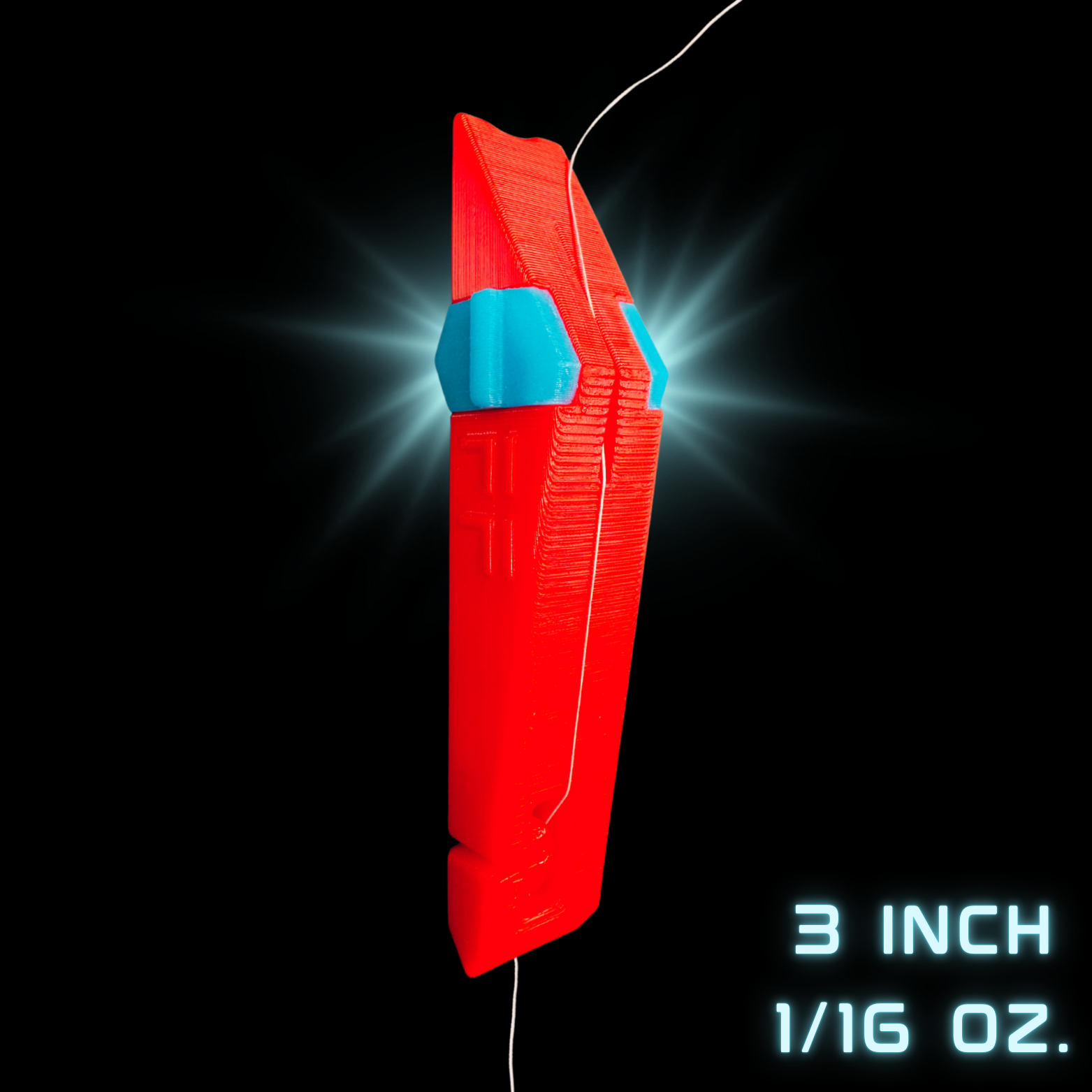Turn the overhead lights off and ice fish in stealth after dark. Simply shine the glow blue clip with a LED light and it will glow-in-the-dark for an extended period.